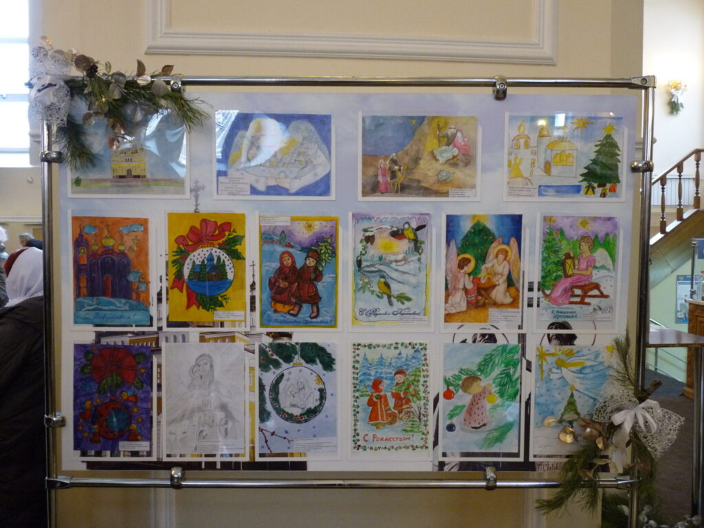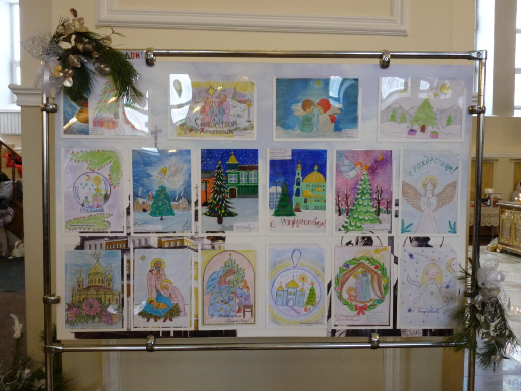 В храме святых равноапостольных Мефодия и Кирилла, учителей Словенских, г. Саранска открылась выставка детских рисунков и поделок, посвященная празднику Рождества Христова. На ежегодный конкурс «Рождественская сказка» были представлены работы юных талантов со всего города. Предварительные итоги уже подведены, и в ближайшее время победители будут награждены памятными подарками. А пока прихожане могут посмотреть и оценить творческие работы детей, излучающие тёплый свет праздника Рождества Христова. На рисунках ожили евангельские события, повествующие о Богомладенце. Зимние пейзажи с православными храмами, на фоне которых изображенные персонажи славят Христа, отражают святочные традиции.